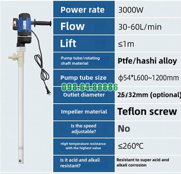 Bơm hút hóa chất công suất lớn JDT-3000W-PTFELG