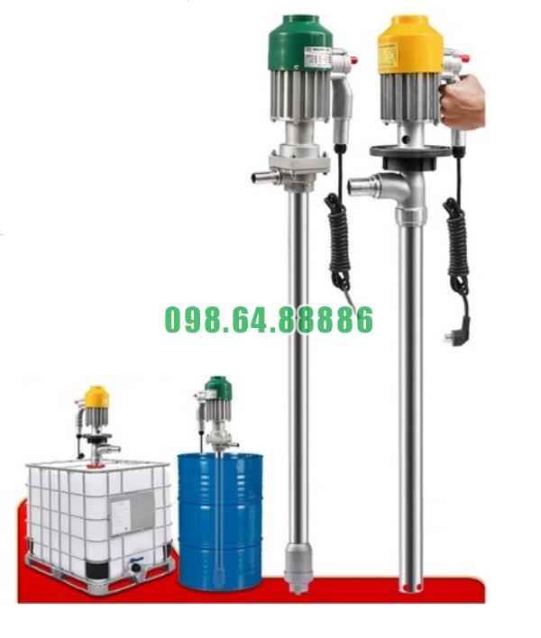 Đưa ống bơm vào thùng phuy hoặc bồn chứa dung môi liên quan, đảm bảo đầu hút chạm gần đáy.