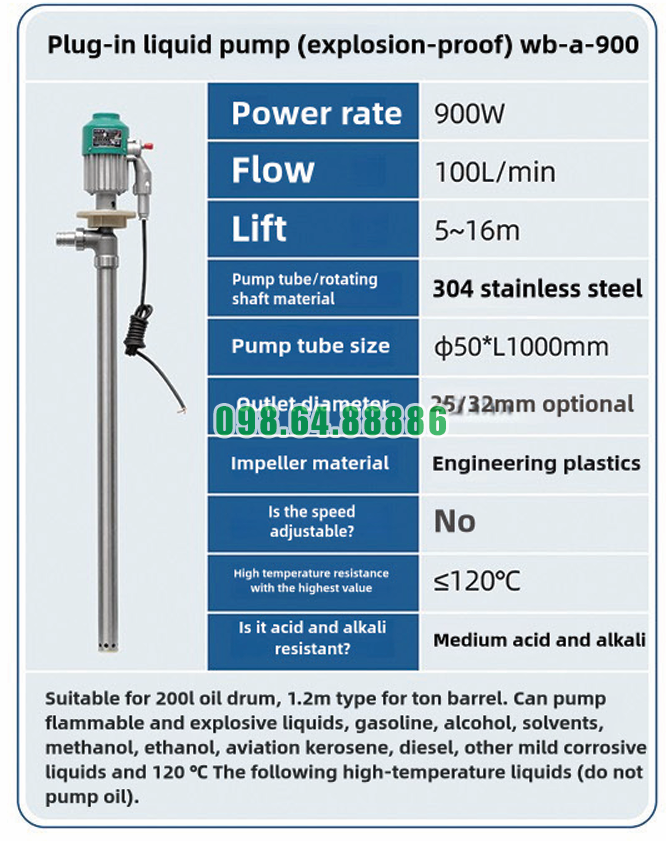Ứng dụng Máy bơm chất lỏng cắm trực tiếp chống cháy nổ WB-A-900 tại các trạm chiết rót khí hóa lỏng mang lại hiệu quả cao trong việc đảm bảo an toàn và tối ưu vận hành. Với thiết kế chuyên dụng, hiệu suất mạnh mẽ và độ bền cao, WB-A-900 là lựa chọn phù hợp cho các hệ thống yêu cầu tiêu chuẩn an toàn nghiêm ngặt.