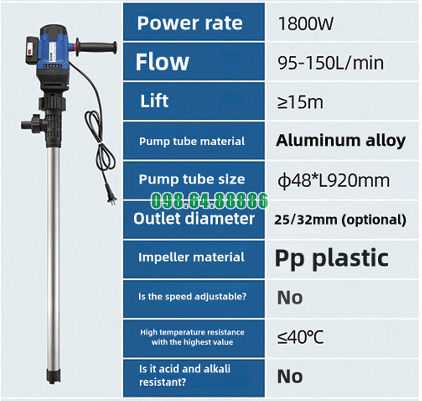 Điều này giúp bơm điện thùng phuy cao cấp JDT-1800W-L92 hoạt động bền bỉ ngay cả trong môi trường khắc nghiệt.