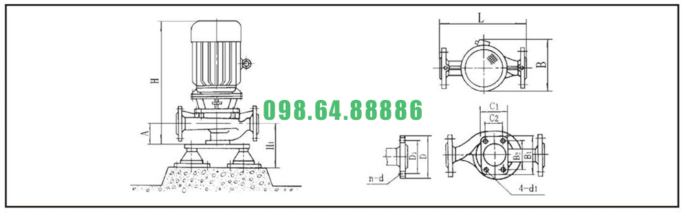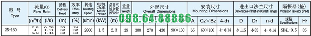 Bơm nước inline ly tâm trục đứng ISG25-160, IRG25-160 động cơ 1.5 kw