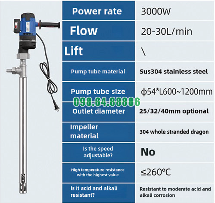 Lợi thế về nhiệt độ của Bơm nhúng thùng phuy JDT-3000W-JLG260 so với đối thủ nằm ở khả năng chịu nhiệt lên đến 260°C, độ ổn định cơ khí cao và vật liệu inox 304 bền bỉ. Nhờ đó, bơm không chỉ vận hành an toàn với chất lỏng nóng mà còn giúp doanh nghiệp tối ưu thời gian, hiệu suất và chi phí trong sản xuất công nghiệp.